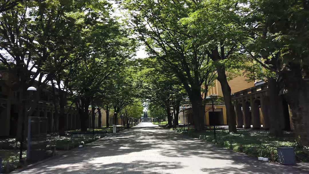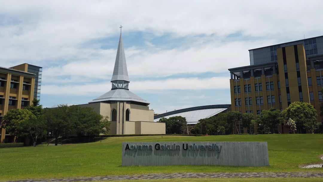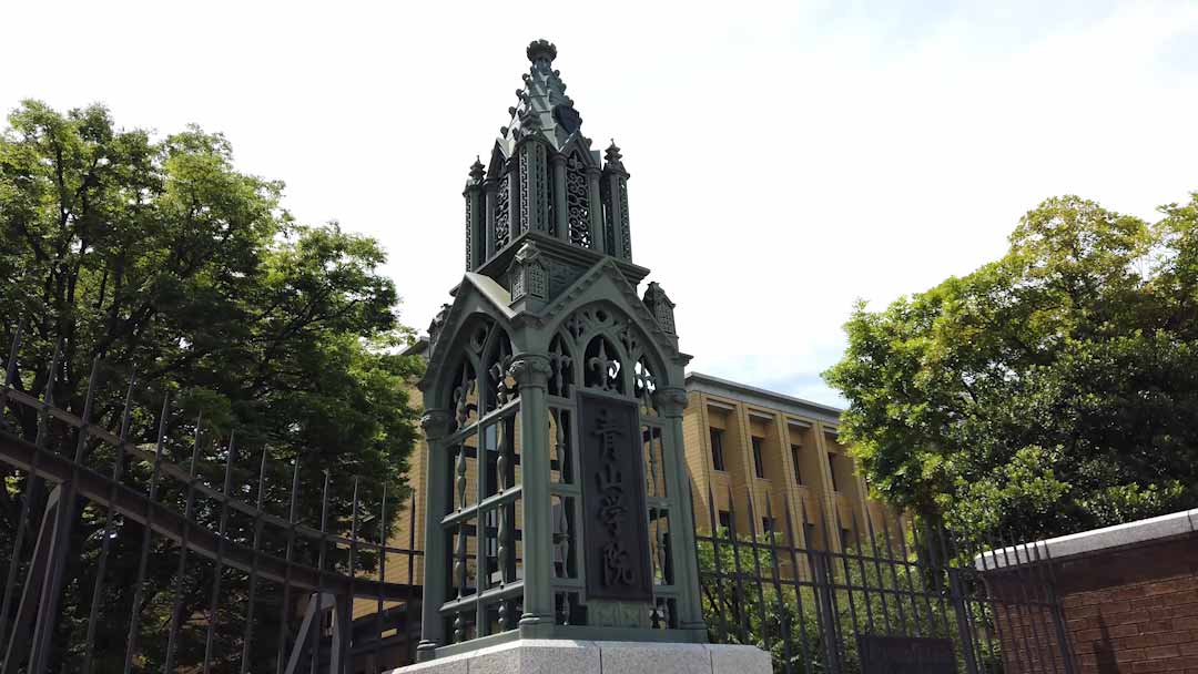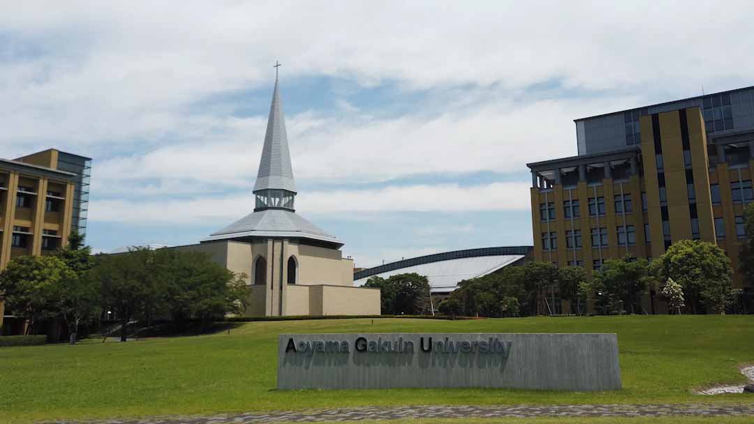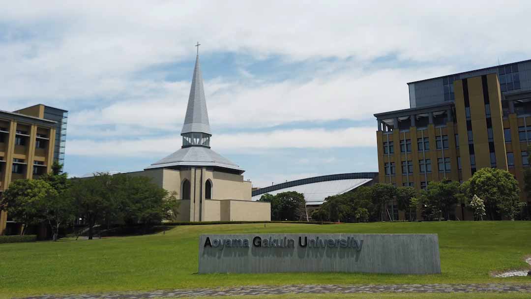 広々としたガーデンは、四季折々の花木が散在していて、きれいで居心地の良い場所です。晴れた日にはここでお弁当を食べたり、おしゃべりをしたりして過ごす学生もいます。せせらぎのそばには使徒ヨハネ像が設置されていて、受験生が触れると青学に合格すると言われています。ほかにも、バスケットボールコートも設けられていて授業がないときにはにぎやかな時間を過ごしています。奥には、「Aoyama Gakuin University」と書かれた石碑もあります。(理工学部・村上さん)